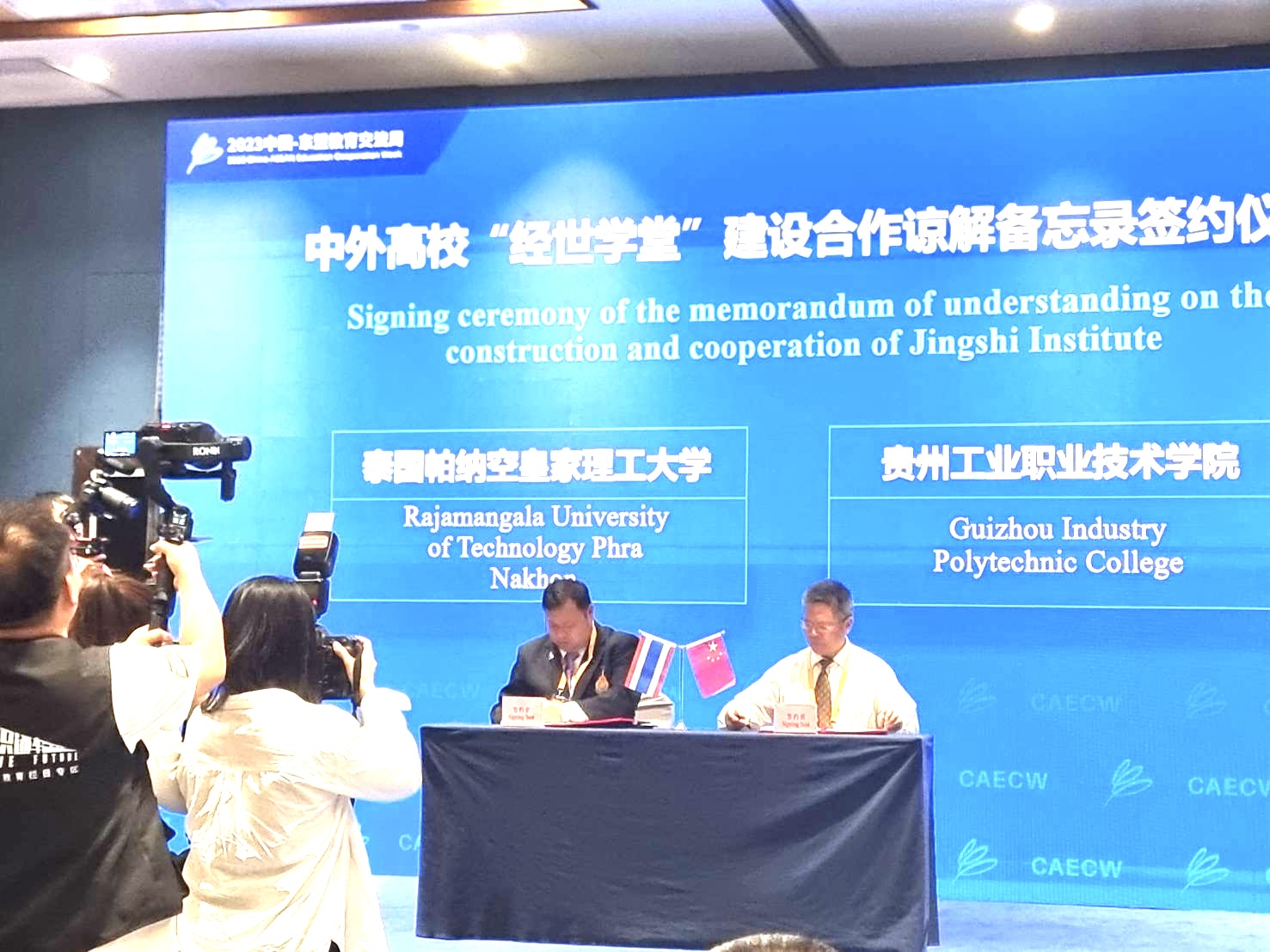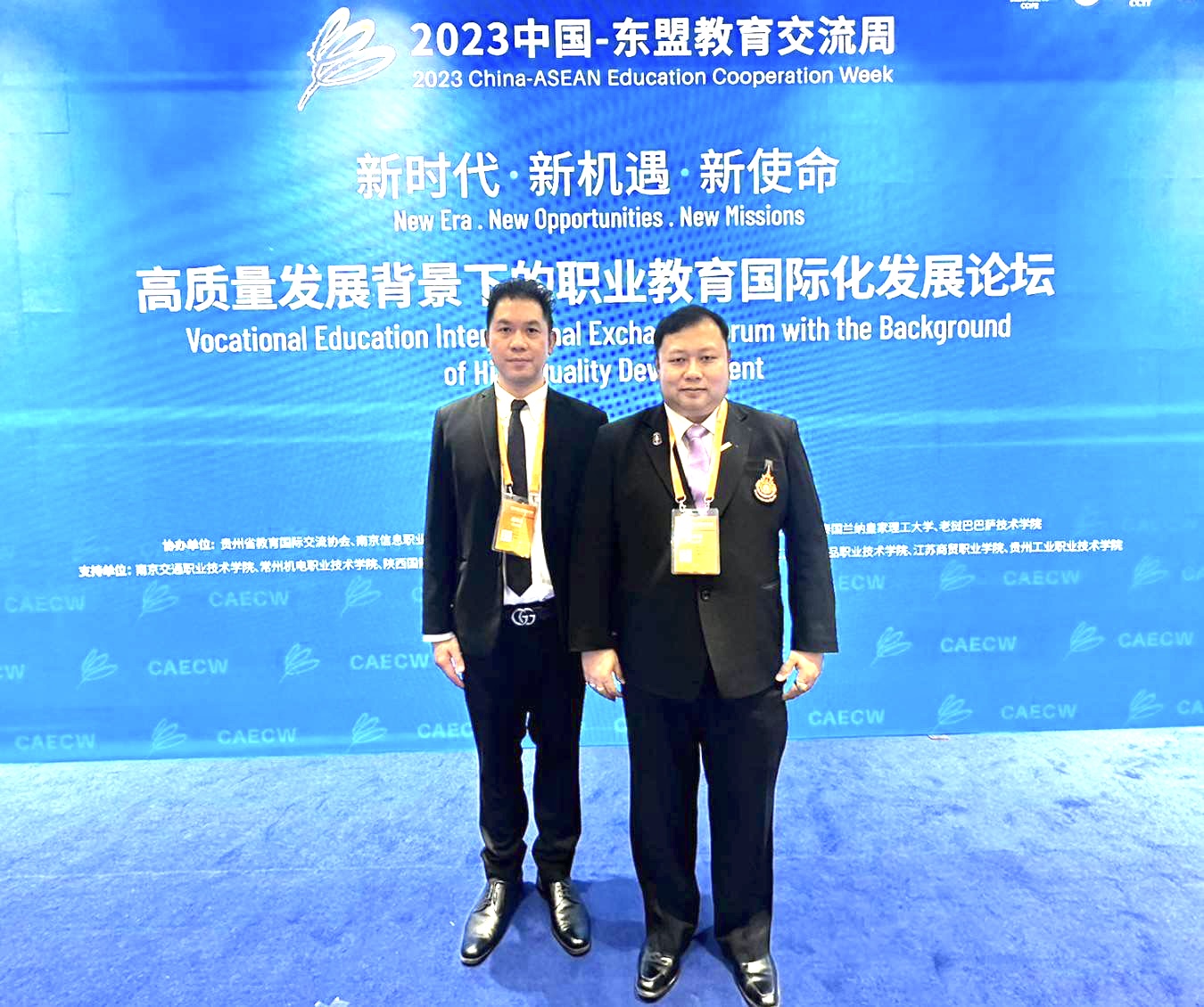 ดร.ณัฐวรพล รัชสิริวัชรบุล อธิการบดีมหาวิทยาลัยเทคโนโลยีราชมงคลพระนคร พร้อมด้วย ผศ.ดร. ปริญญ์ บุญกนิษฐ รองอธิการบดีฝ่ายบริหารวิจัยและพัฒนานวัตกรรม เดินทางศึกษาดูงาน และเข้าร่วมนิทรรศการการศึกษานานาชาติ 2023 China – ASEAN Education Cooperation Week ณ เมืองกุ้ยหยาง มณฑลกุ้ยโจว สาธารณรัฐประชาชนจีน ระหว่างวันที่ 28-30 สิงหาคม 2566 ในโอกาสนี้ ดร.ณัฐวรพล รัชสิริวัชรบุล อธิการบดีมหาวิทยาลัยเทคโนโลยีราชมงคลพระนคร ได้ลงนามความร่วมมือทางวิชาการ (MOU) กับ Guizhou Industry Polytechnic College พร้อมเจรจาความร่วมมือกับสถาบันการศึกษาชั้นนำอีกหลายสถาบันของสาธารณรัฐประชาชนจีน ที่เข้าร่วมงานในครั้งนี้ เพื่อหาแนวทางในการดำเนินการแลกเปลี่ยนนักศึกษา บุคลากร และการทำงานวิจัย รวมถึงหารือแนวทางในการจัดทำหลักสูตรนานาชาติร่วมกันในอนาคตอีกด้วย
