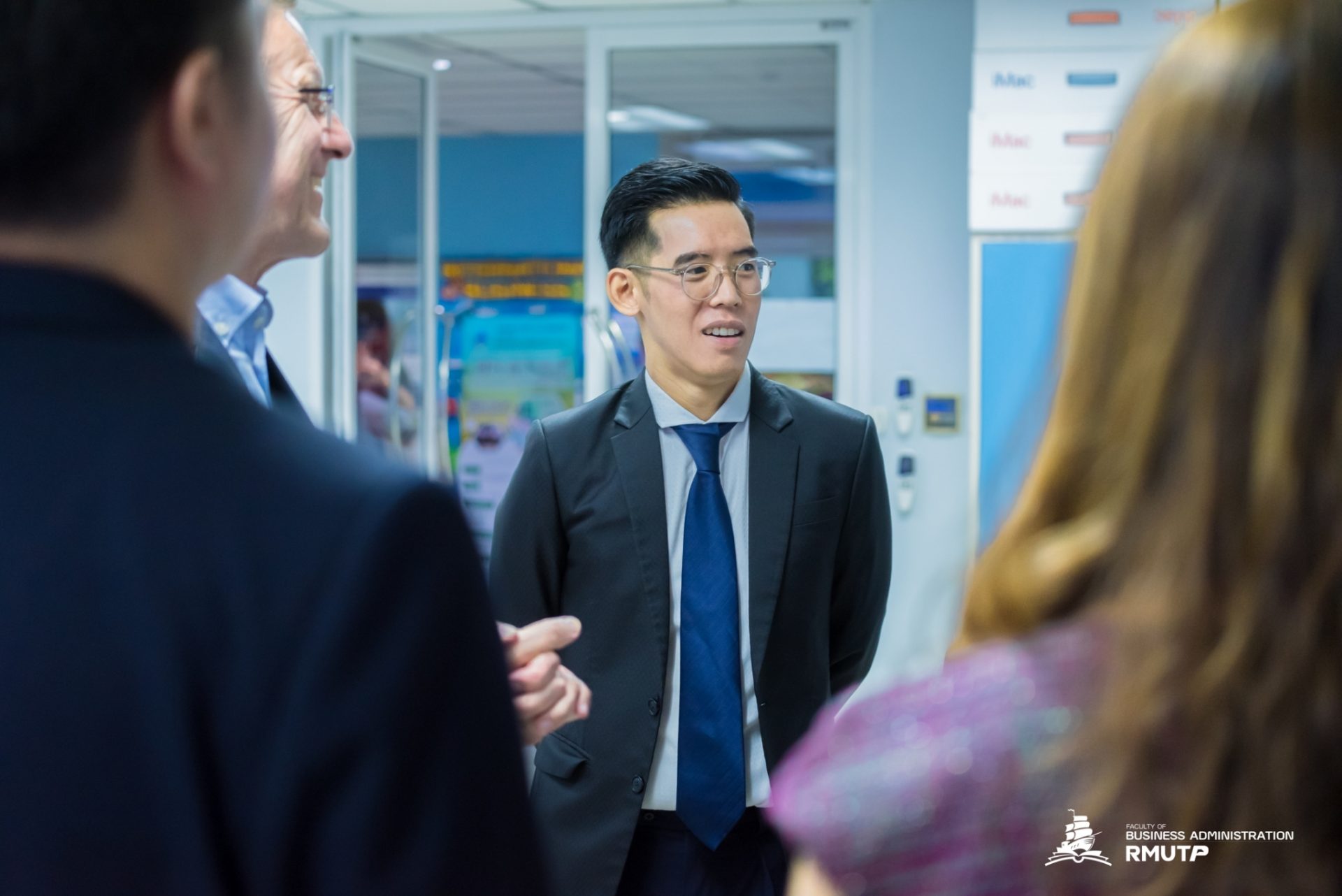ในโอกาสนี้ได้เยี่ยมชมการเรียนการสอนของนักศึกษาเยอรมนี ซึ่งเป็นมหาวิทยาลัยคู่สัญญา Technical University of Applied Sciences สหพันธ์สาธารณรัฐเยอรมนี ที่เดินทางมาศึกษาหลักสูตรระยะสั้นในประเทศไทย ณ สาขาวิชาการจัดการธุรกิจระหว่างประเทศ (นานาชาติ) คณะบริหารธุรกิจ ในโครงการ Intercultural Management Summer School Thailand 2023 ระหว่างวันที่ 11 – 23 กันยายน 2566
