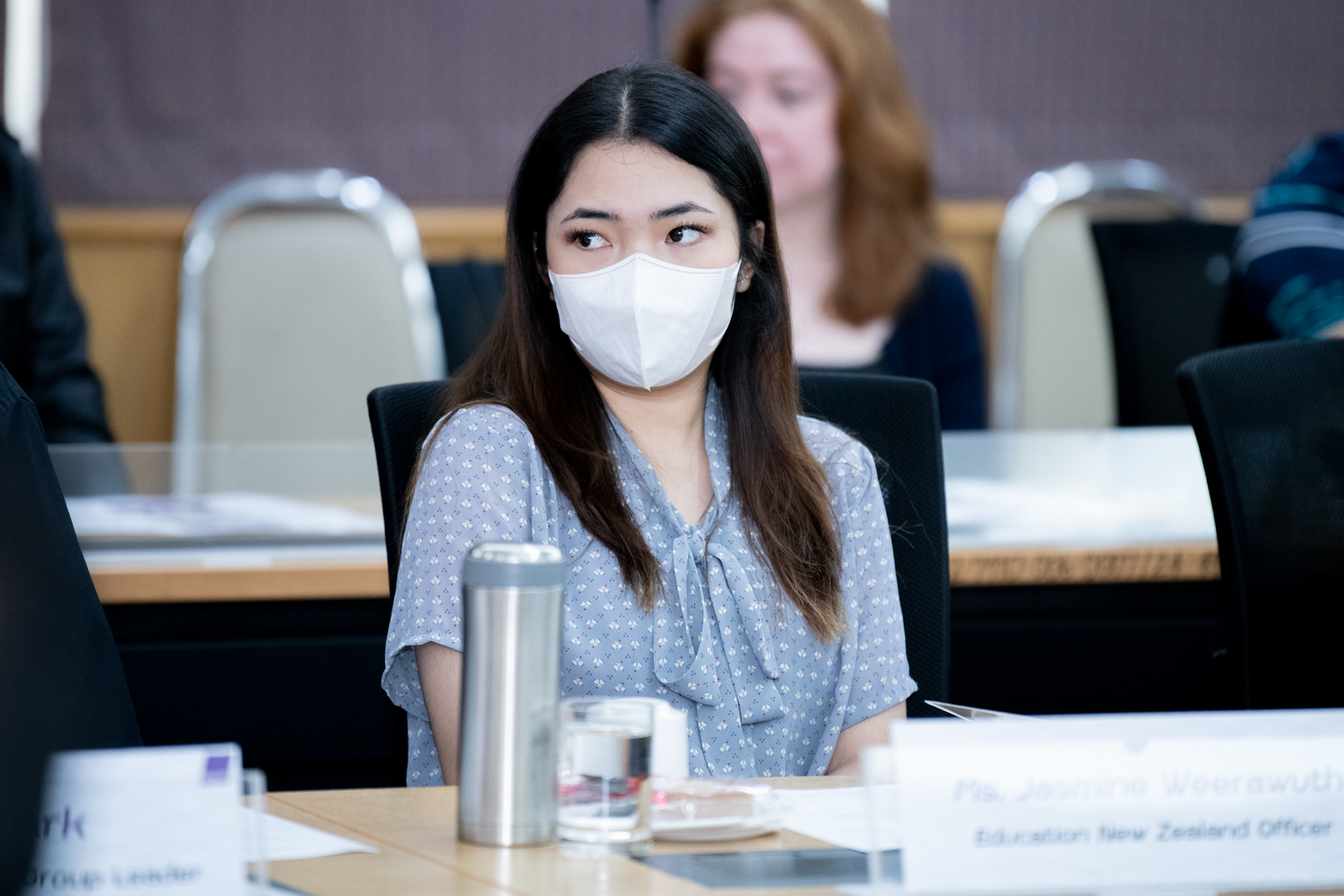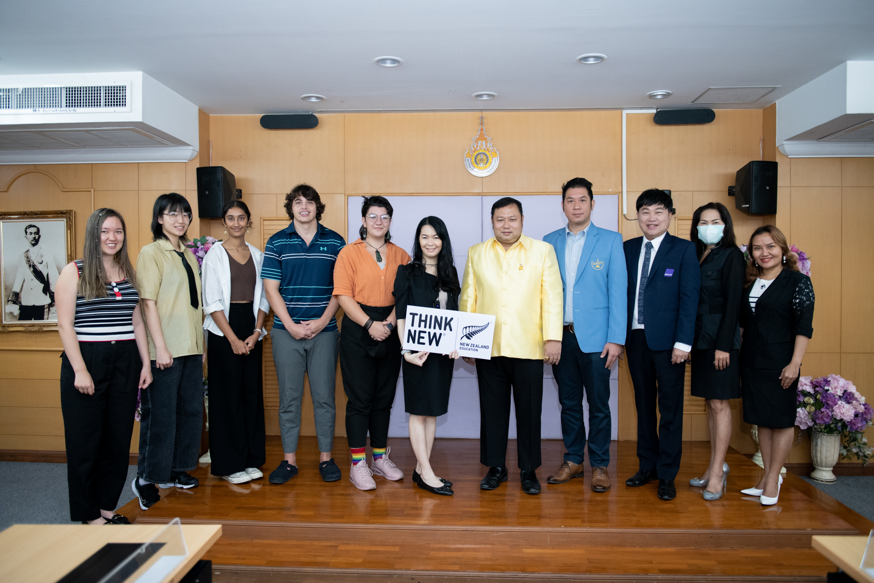 2023年2月6日,Natworapol Rachsiriwatcharabul 博士(曼谷皇家理工大学校长)在特韦校区(Thewet Campus)会见了由新西兰驻泰国大使馆新西兰教育推广局(ENZ)教育主任 Jaruwan Pongjaruwat 女士率领的代表团,以及 10 名来自新西兰**奥克兰大学(University of Auckland)**的新西兰政府奖学金学生。此次访问旨在促进双方师生间的文化交流,并进一步加强两国教育机构之间的紧密联系。