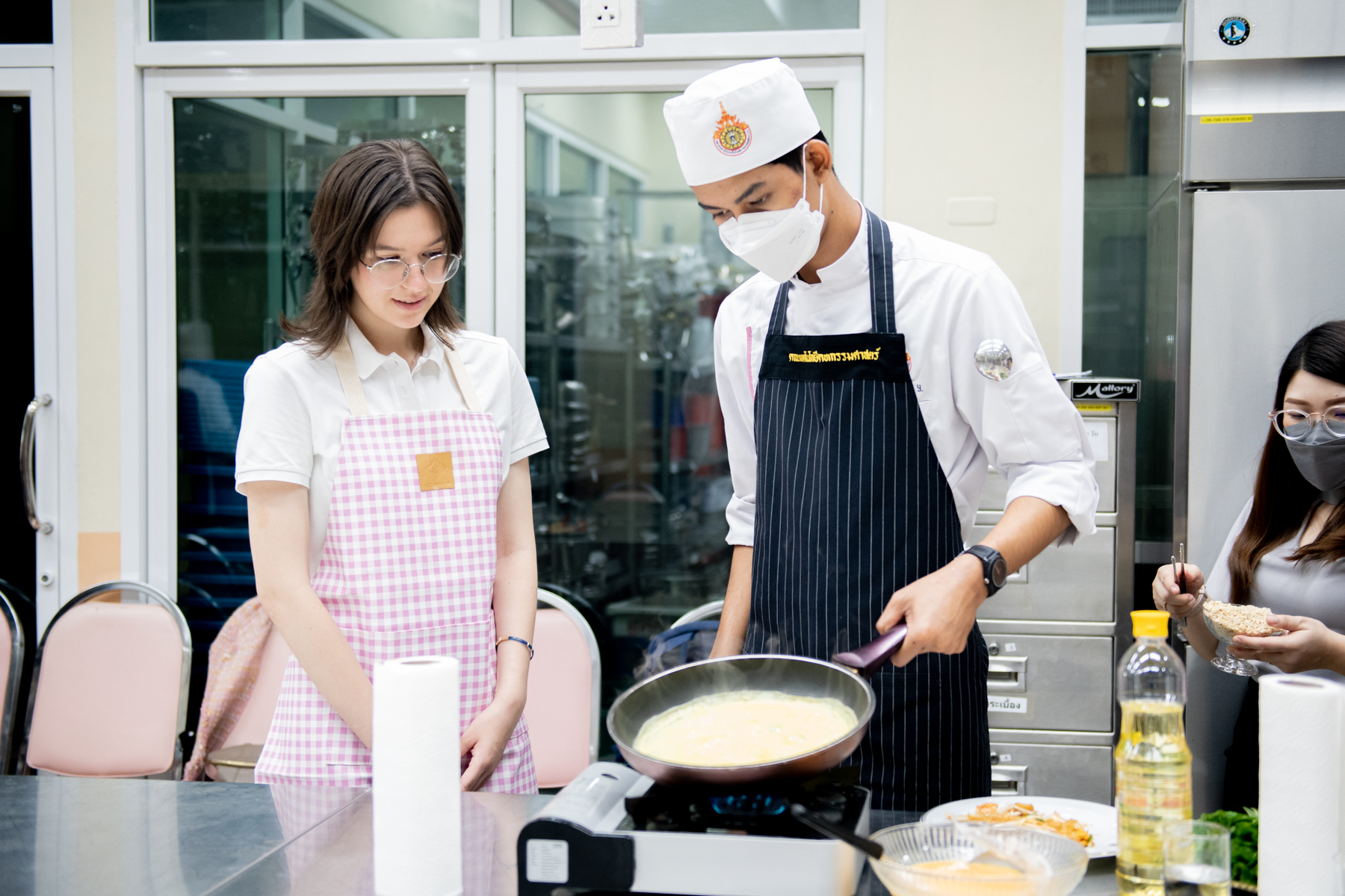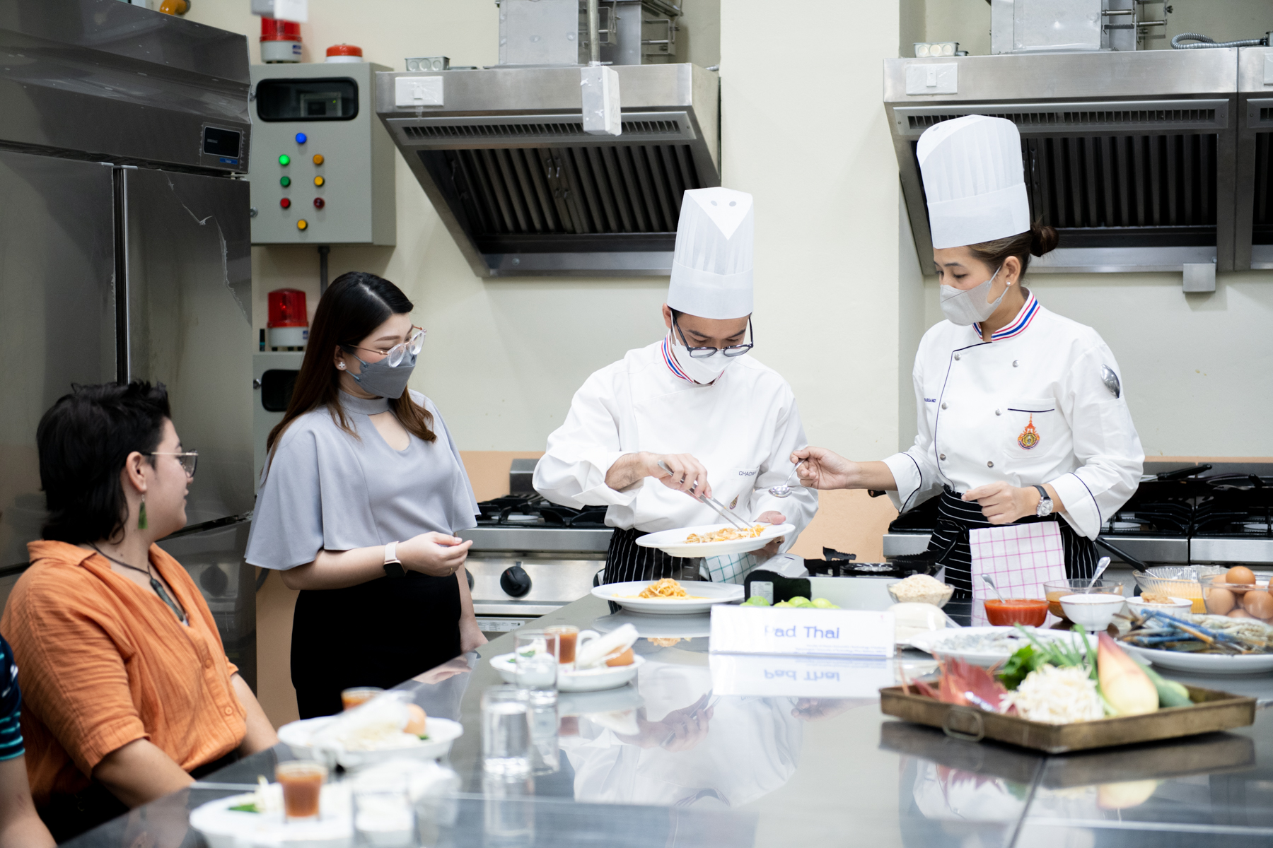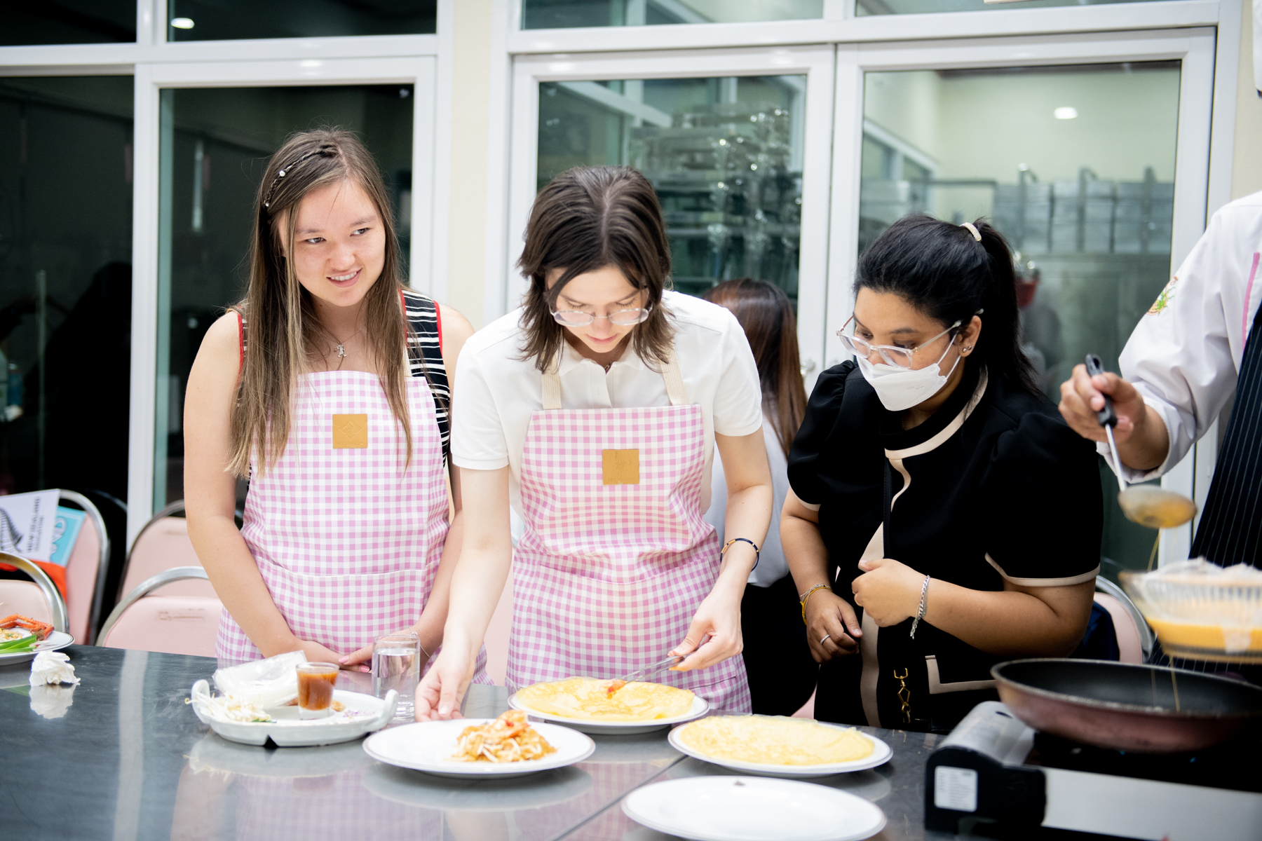 活动期间,新西兰奖学金学生代表团参加了由家政科技学院 Chaowalit Oupathak 助理教授及 Pratsanee Thubbaiyam 老师指导的**泰式炒河粉(Pad Thai)**烹饪示范。泰式炒河粉是闻名全球的泰国国菜之一。