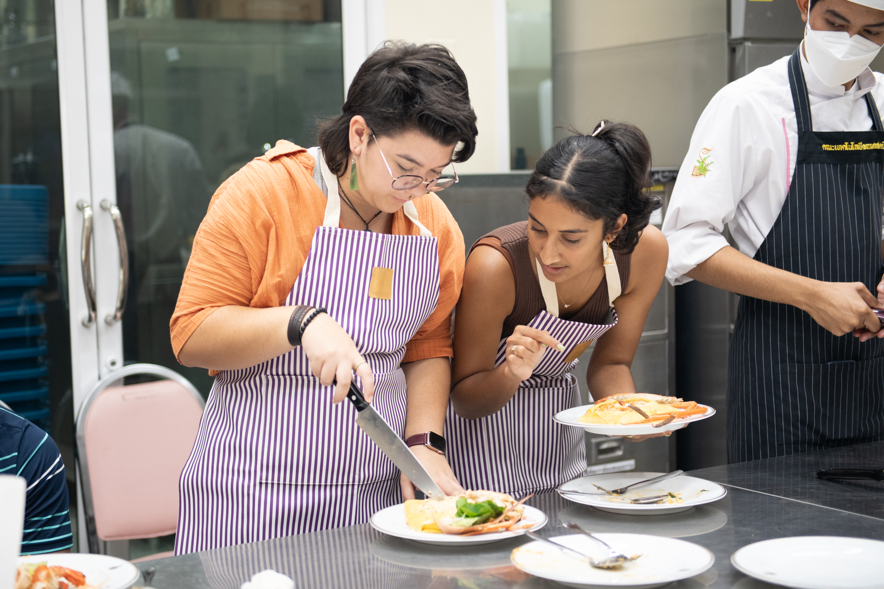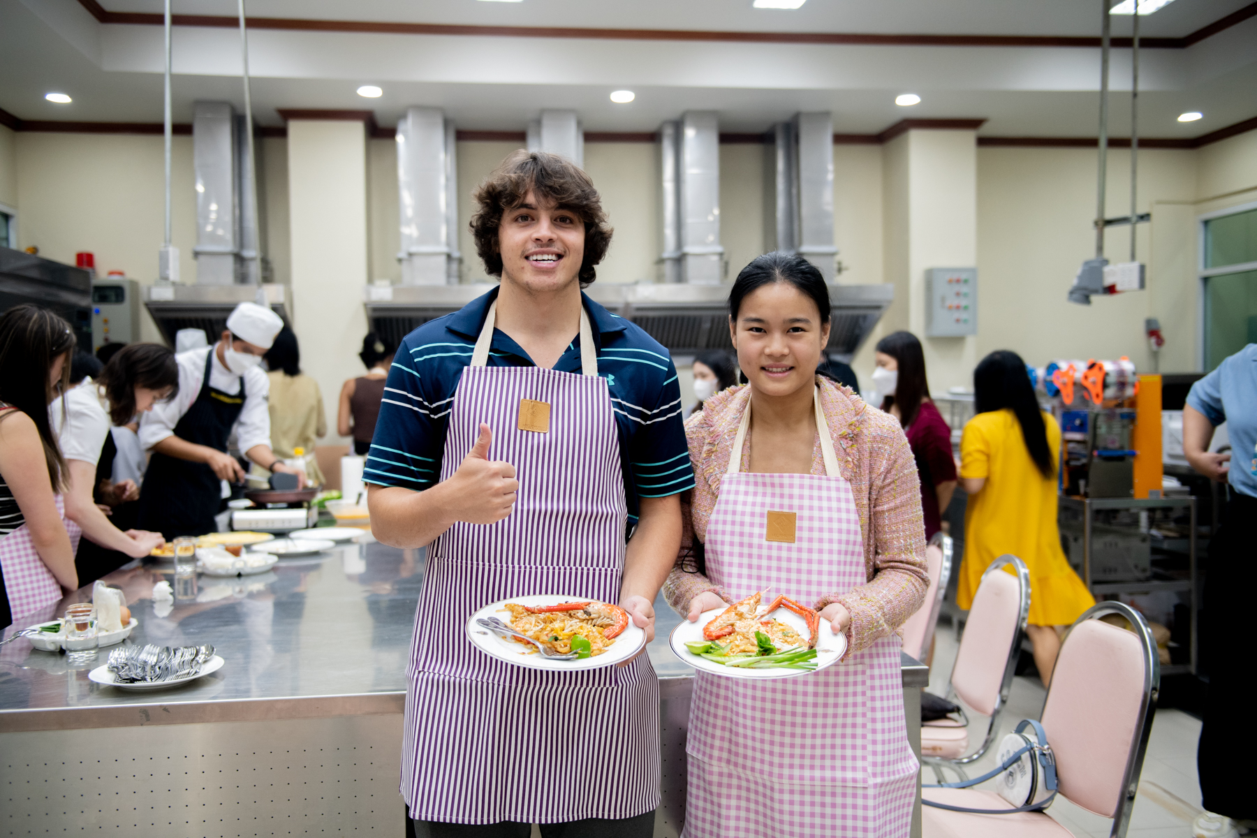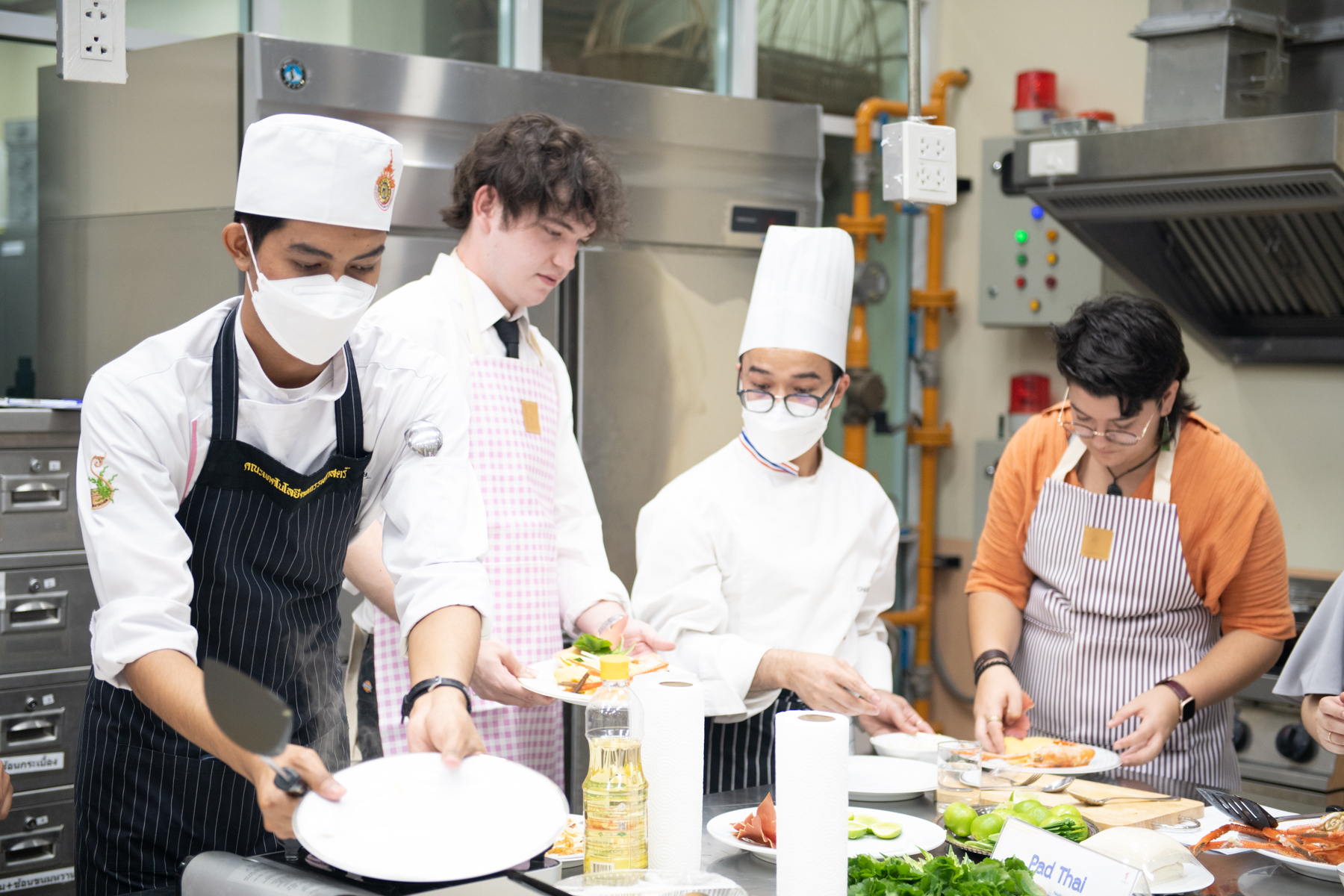 活动期间,新西兰奖学金学生代表团参加了由家政科技学院 Chaowalit Oupathak 助理教授及 Pratsanee Thubbaiyam 老师指导的**泰式炒河粉(Pad Thai)**烹饪示范。泰式炒河粉是闻名全球的泰国国菜之一。