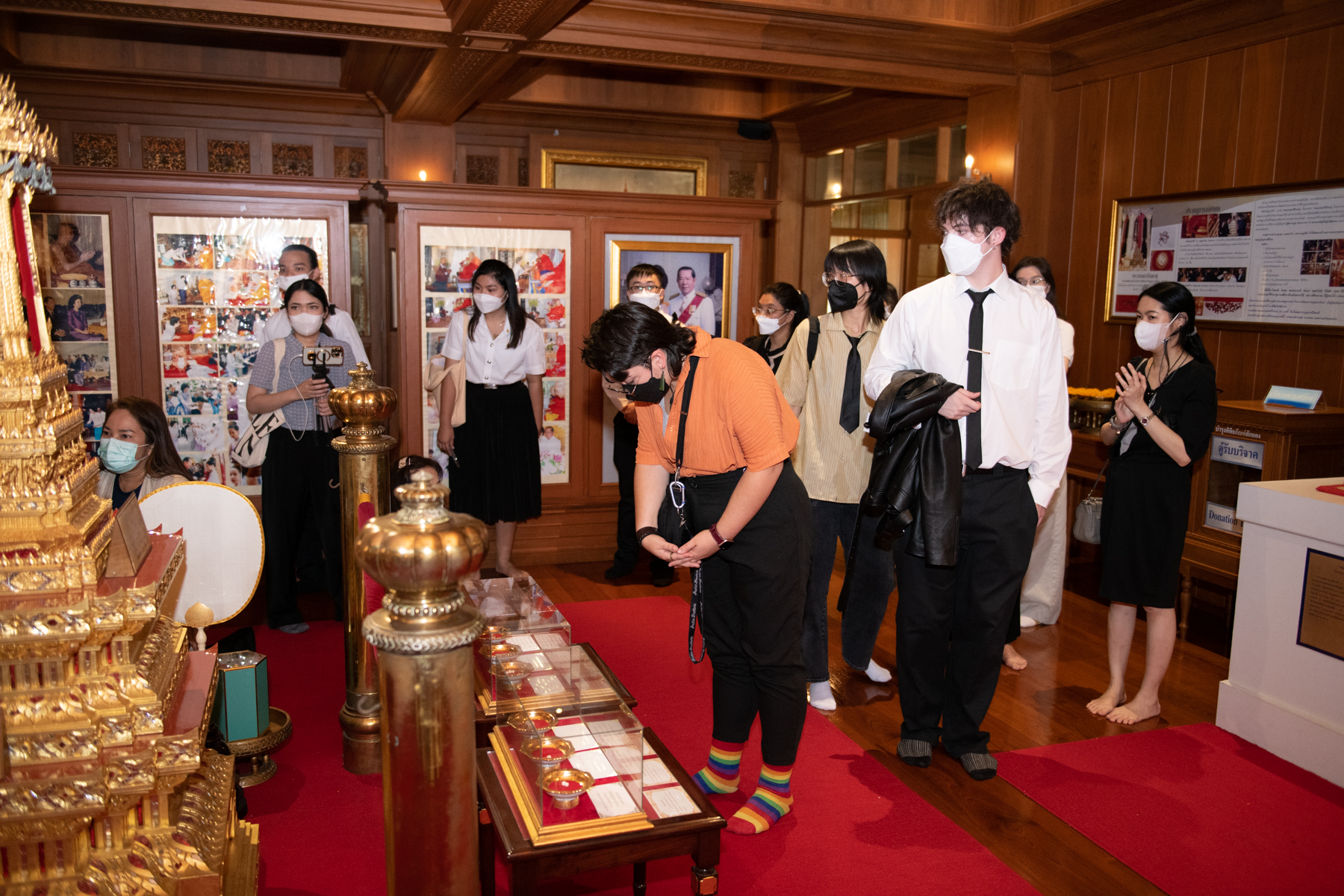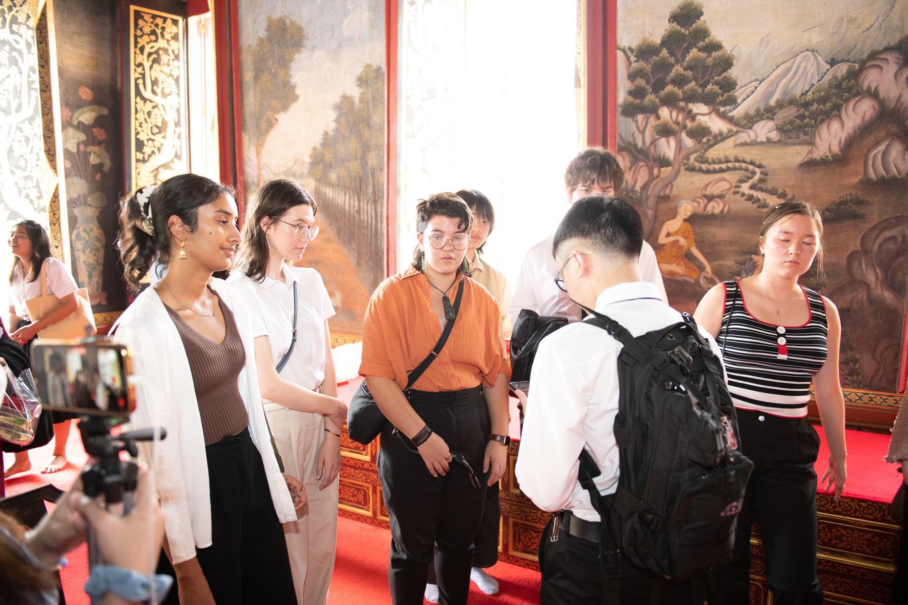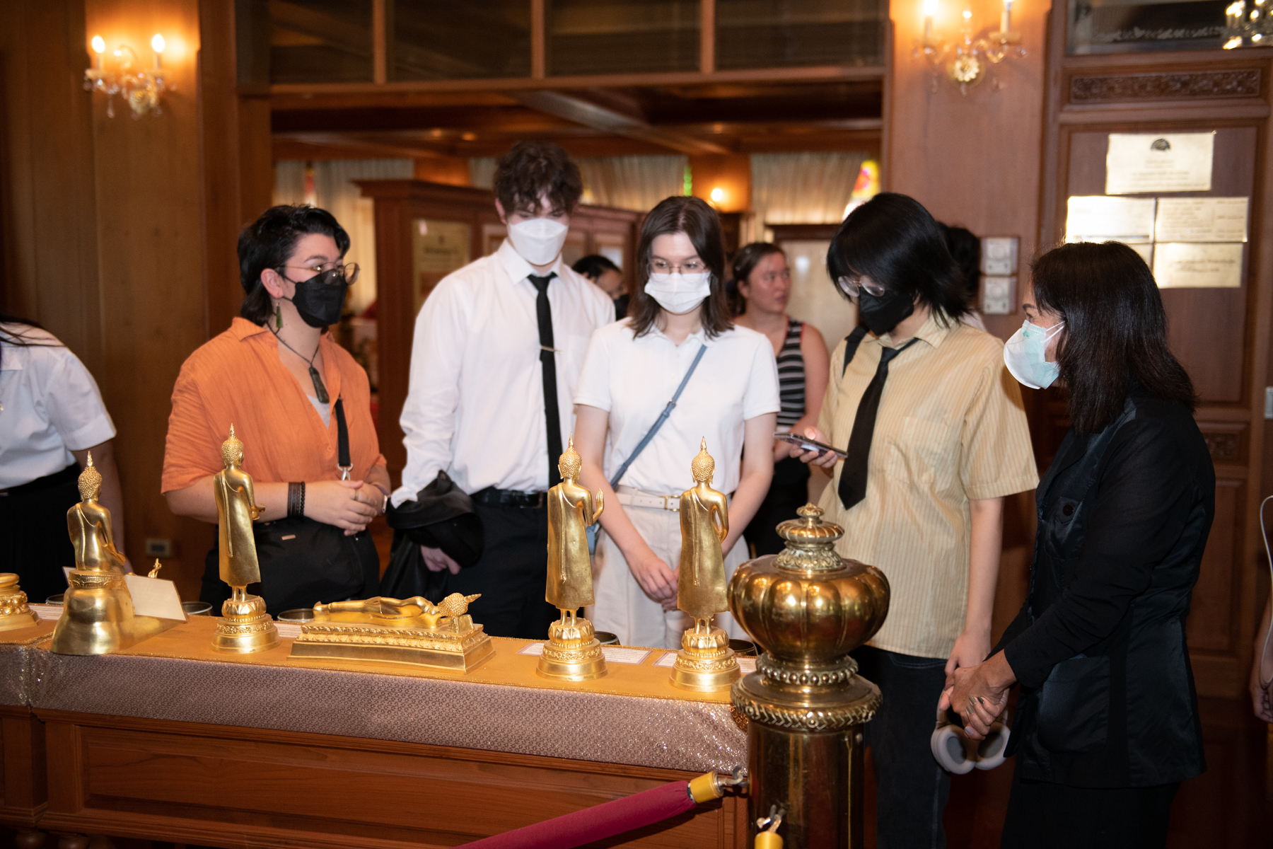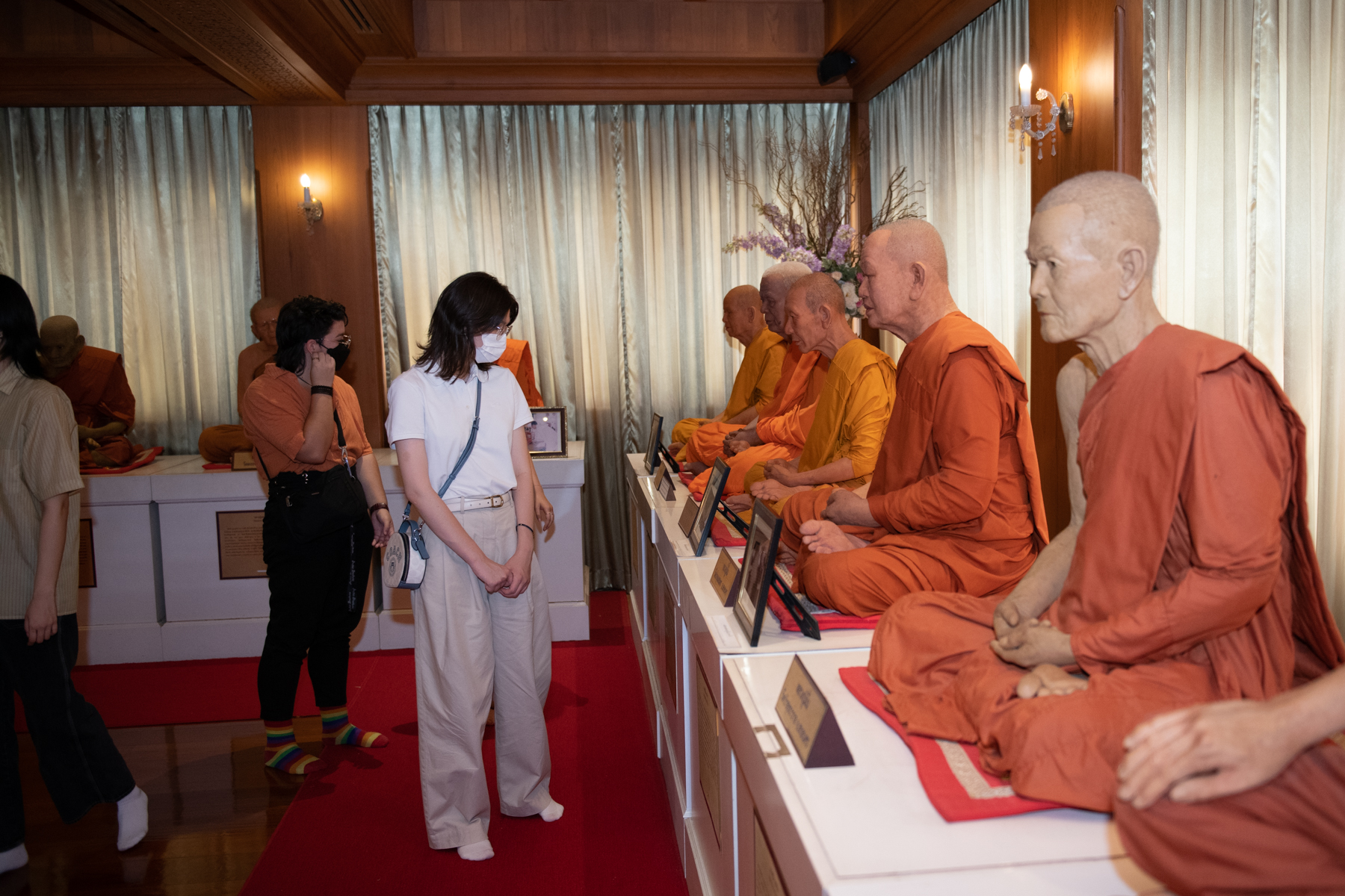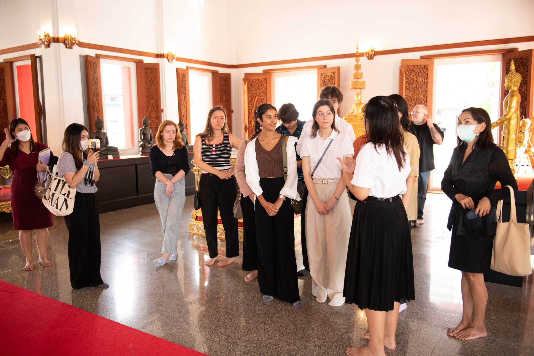随后,代表团前往**瓦德瓦拉昆春寺(Wat Devaraj Kunchon Varavihara)**参观。该寺庙已被泰国艺术厅登记为重要历史遗迹。代表团成员们在此欣赏了大雄宝殿内的精美壁画,并参观了寺内的金柚木博物馆。