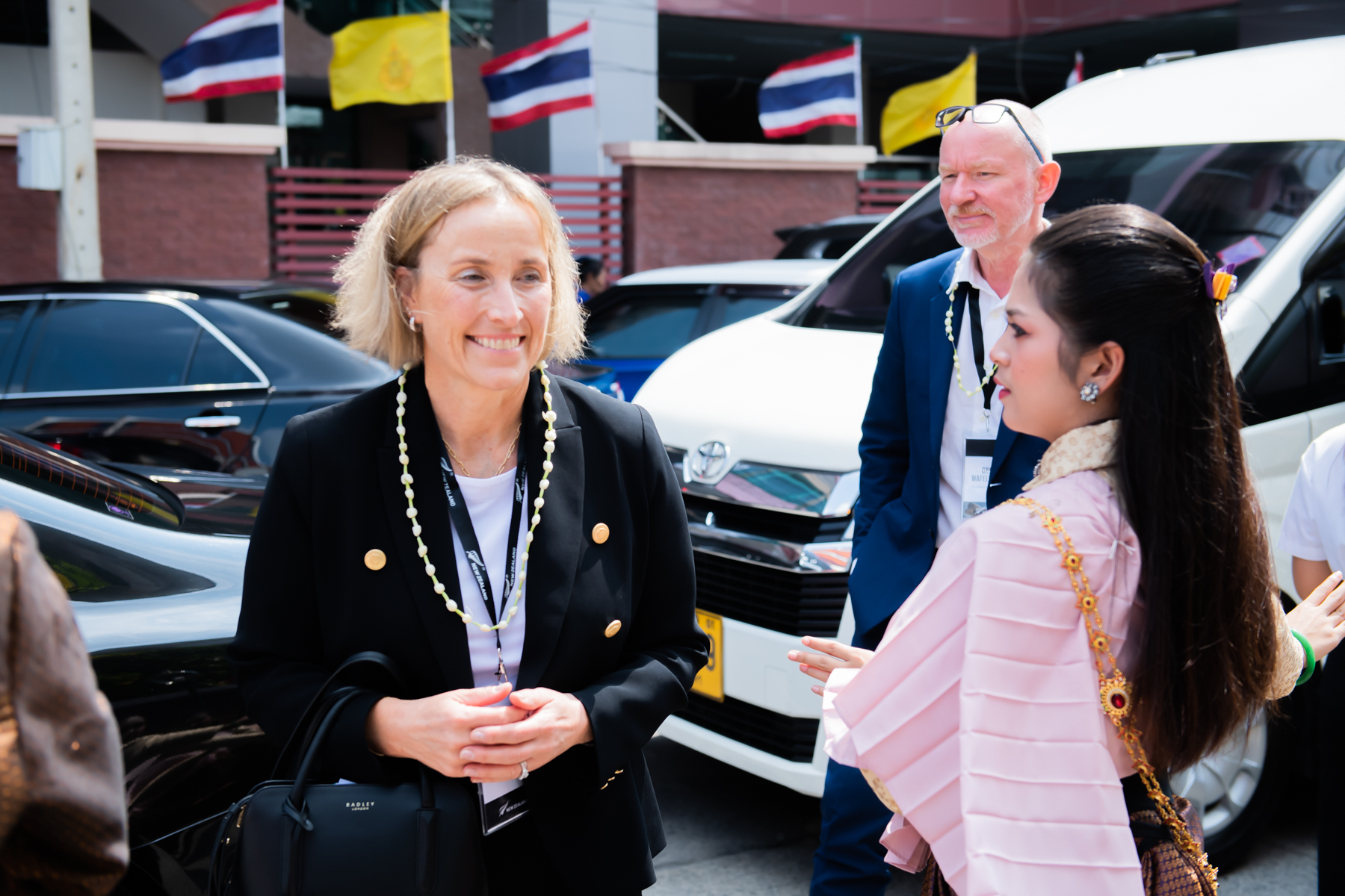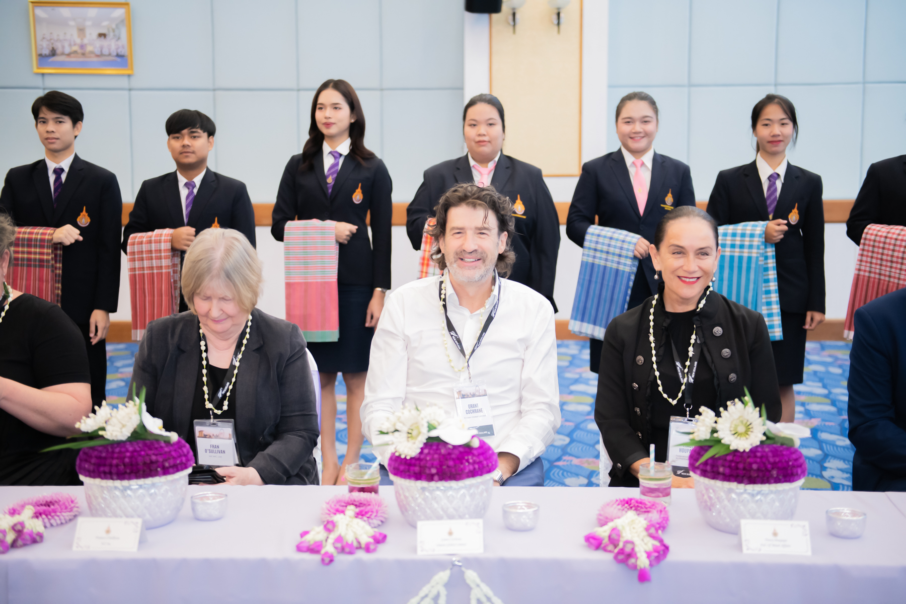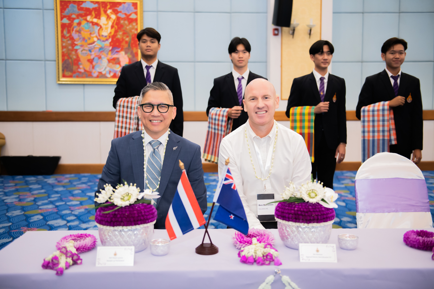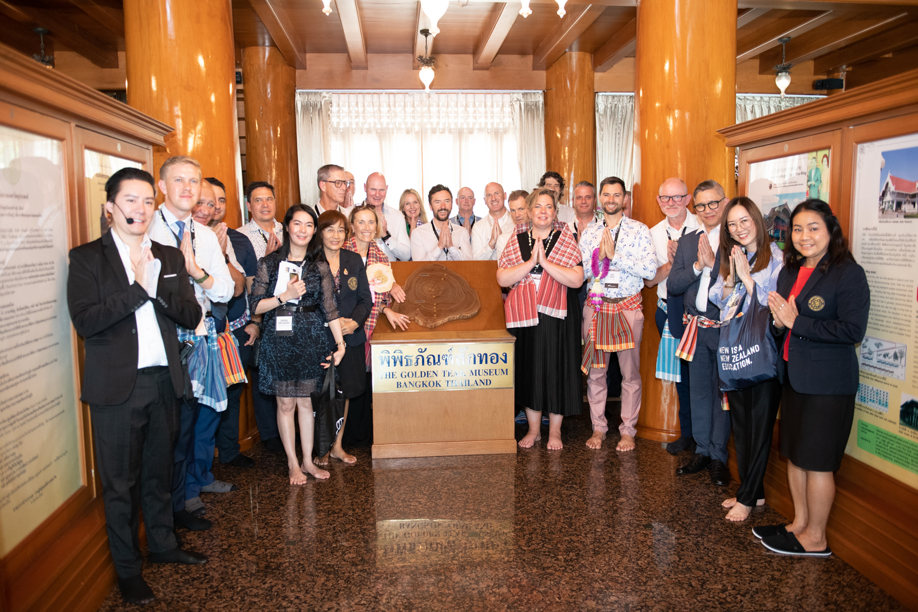 2024 年 4 月 17 日,曼谷皇家理工大学 (RMUTP) 举办了泰国文化交流活动,热烈欢迎新西兰教育机构高层及新西兰总理随行代表团。曼谷皇家理工大学校长 Natworapol Rachsiriwatcharabul 博士及校领导团队出席欢迎仪式,并带领代表团参观了泰国艺术文化作品展。