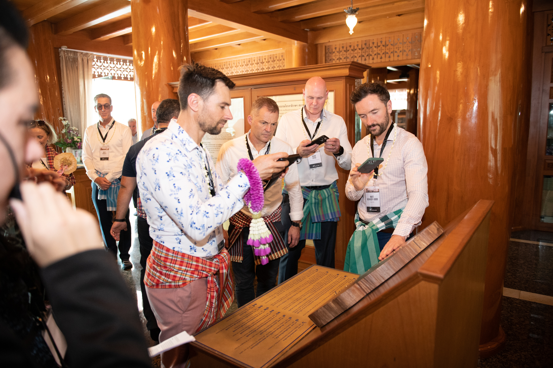 活动期间,家政科技学院现场演示了泰国传统香料制作。代表团还体验了传统的“洒水礼”(Rod Nam Dam Hua),并获赠象征泰国身份的泰式花环和格纹布(Pha Khao Ma)。此外,代表团还参观了瓦德瓦拉昆村寺 (Wat Devaraj Kunchon) 以及位于曼谷皇家理工大学秋提威 (Chotiwet) 中心的金柚木博物馆。