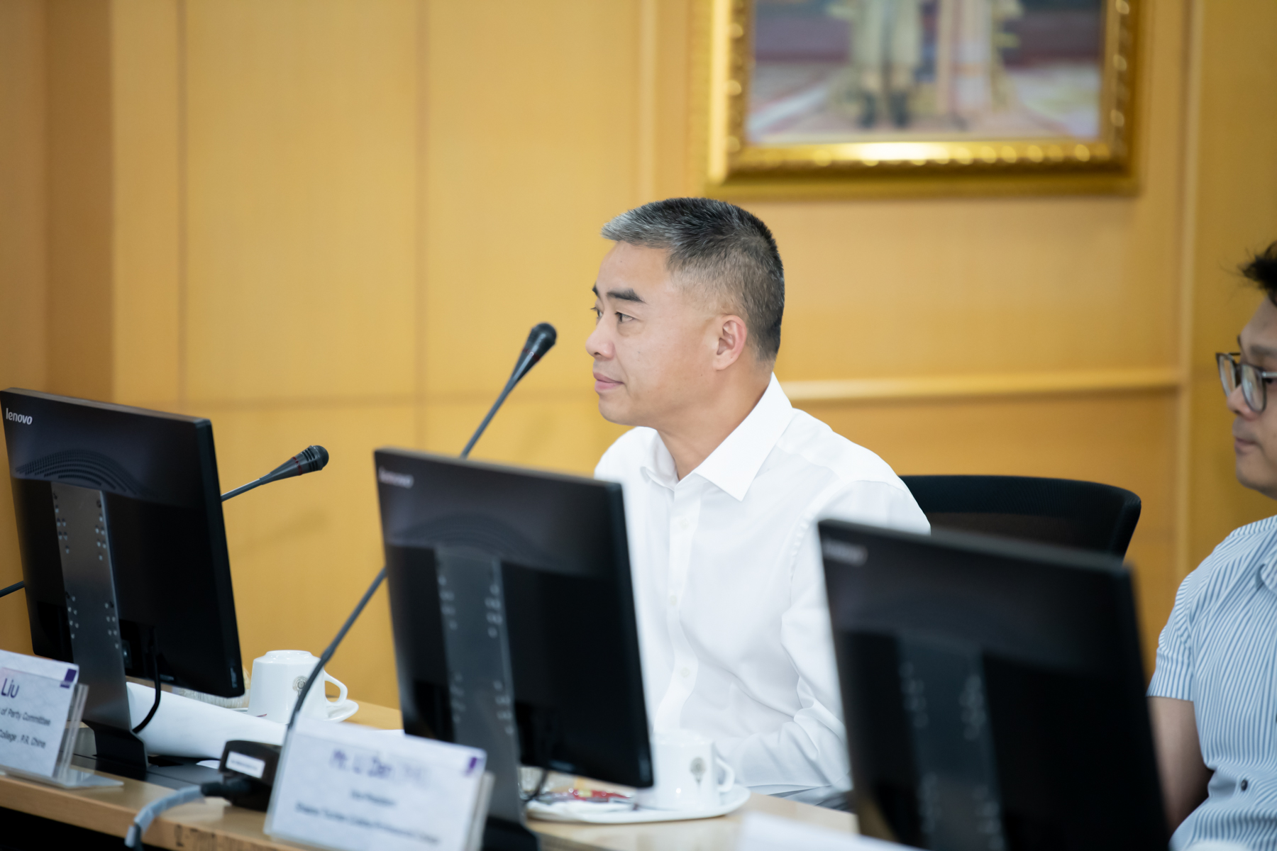 2024年7月17日,曼谷皇家理工大学(RMUTP)负责行政、研究与创新发展的副校长 Prin Boonkanit 助理教授及校领导团队,在 Thewet 校区校长办公大楼三楼 Raphiphat 会议室接见了内江职业技术学院党委副书记、院长 刘博先生,以及陕西旅游烹饪职业学院副院长 李丹先生一行。