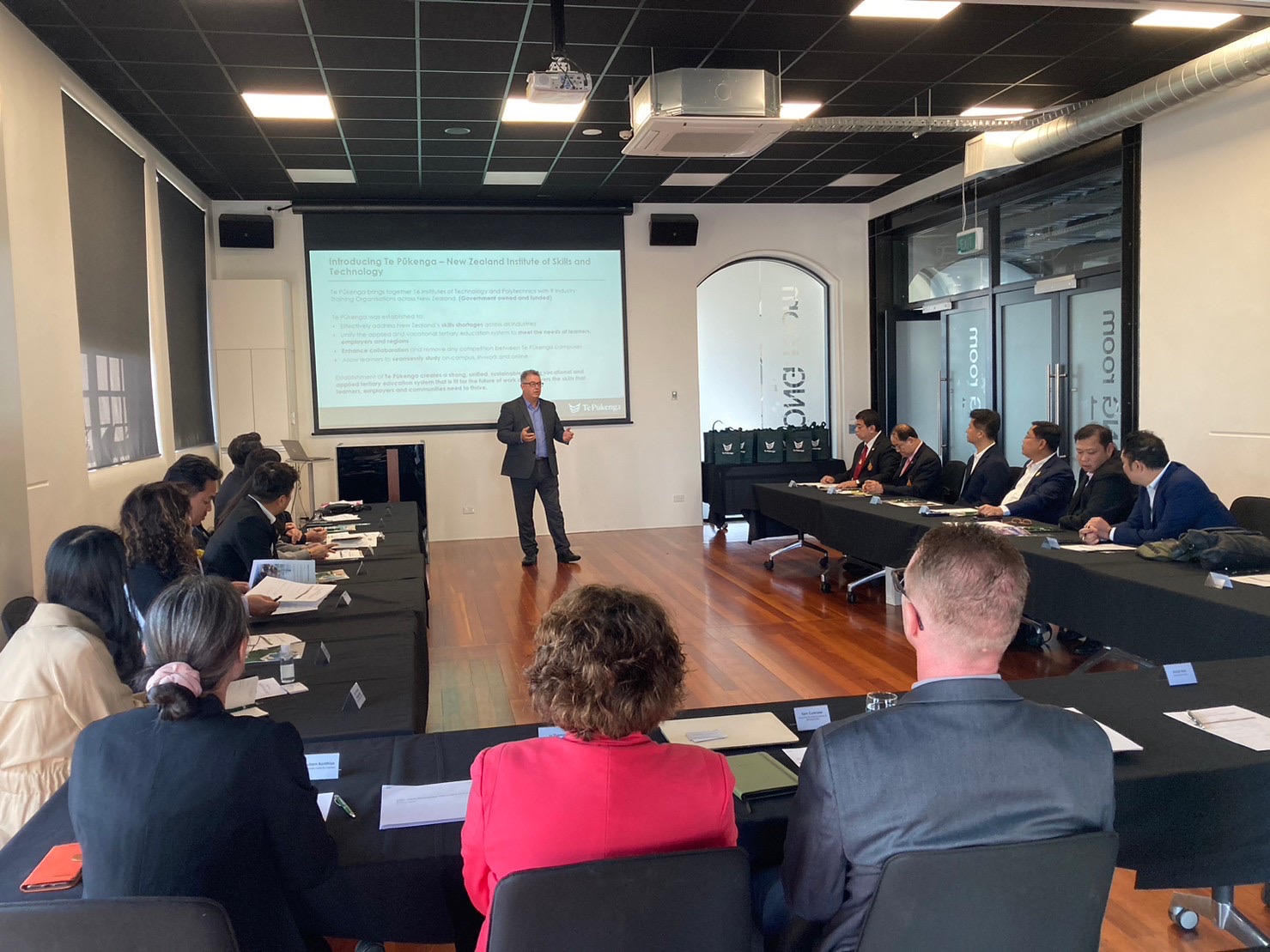 During this visit, the executives met with the presidents and administrators of seven prominent educational institutions: 1. The University of Waikato, 2. Waikato Institute of Technology (Wintec), 3. Whitireia and WelTec, 4. University of Canterbury, 5. Lincoln University, 6. University of Otago, and 7. Otago Polytechnic. The discussions focused on establishing frameworks for student and staff exchanges, joint research projects, and the potential development of joint international curricula in the future.
