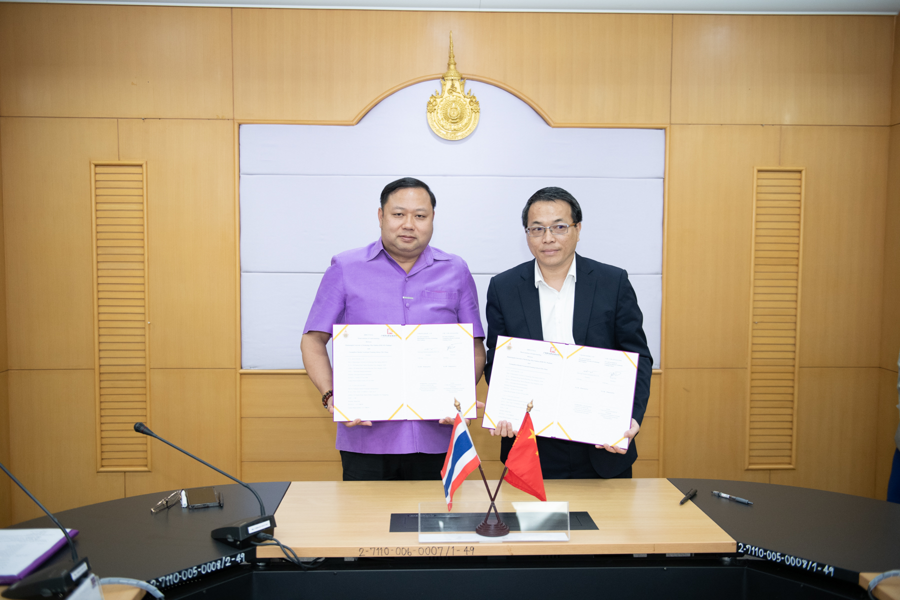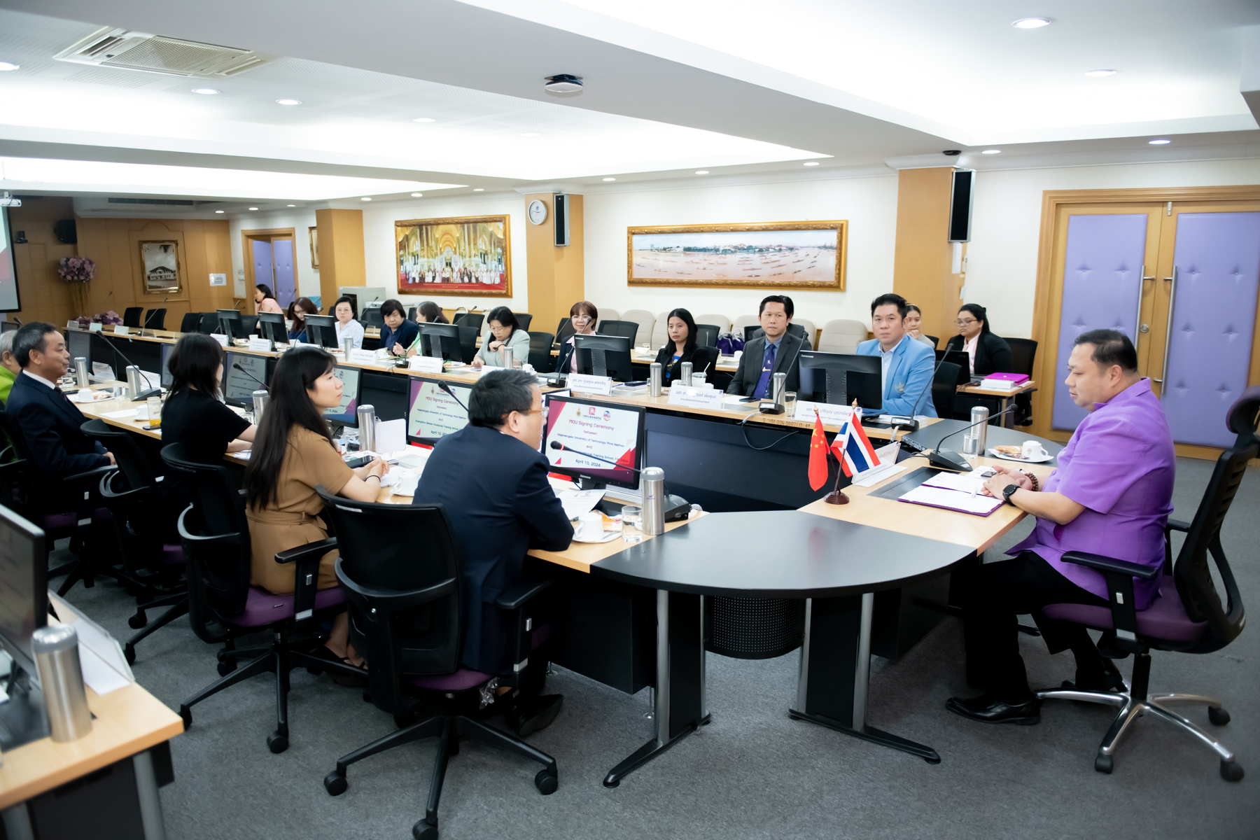 On this occasion, Dr. Natworapol Rachsiriwatcharabul signed a Memorandum of Understanding (MOU) with Mr. Wang Xiao, an executive from Guangzhou Qiaoda Vocational Training School. The partnership aims to collaboratively develop academic programs, facilitate student and staff exchanges, and organize skill-building activities to enhance the quality of students and personnel to meet international standards. The ceremony took place on April 10, 2024, at the Rapeephat Meeting Room, Office of the President, RMUTP (Thewet Center).
