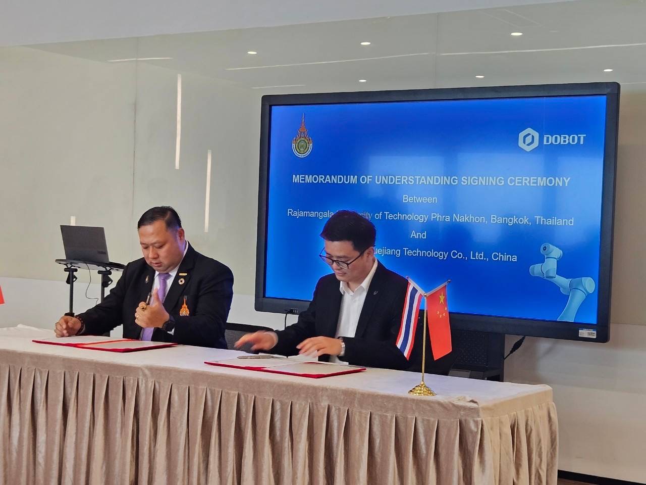 On this occasion, Dr. Natworapol Rachsiriwatcharabul signed a Memorandum of Understanding (MOU) with Shenzhen Yuejiang Technology Co., Ltd. (Dobot). The partnership focuses on academic collaboration, research, and the exchange of students and personnel between the university and the company. This marks a significant step in building an international cooperation network and mutually developing technological capabilities. Additionally, the executive team visited Guangdong AIB Polytechnic College to introduce RMUTP and discuss future collaborations, demonstrating a commitment to international academic development.