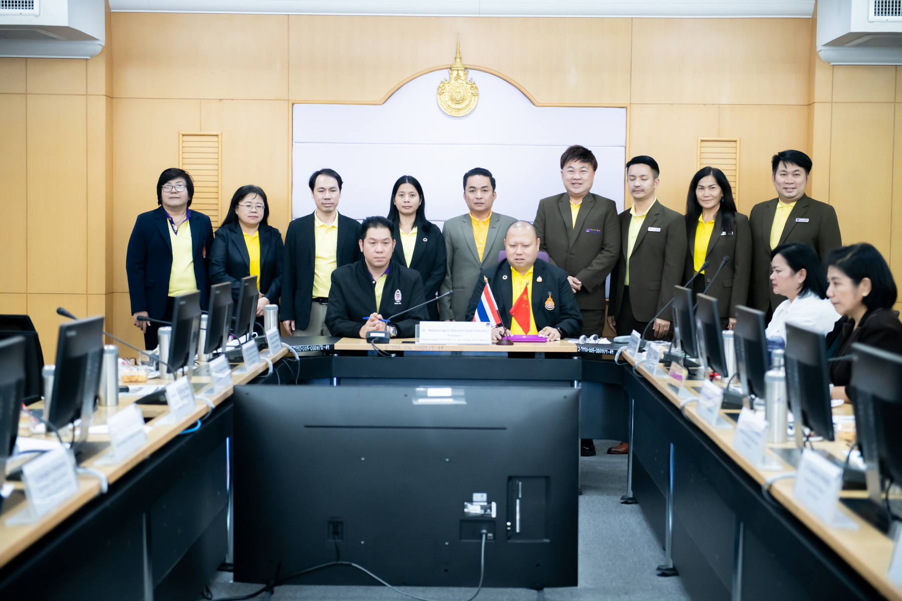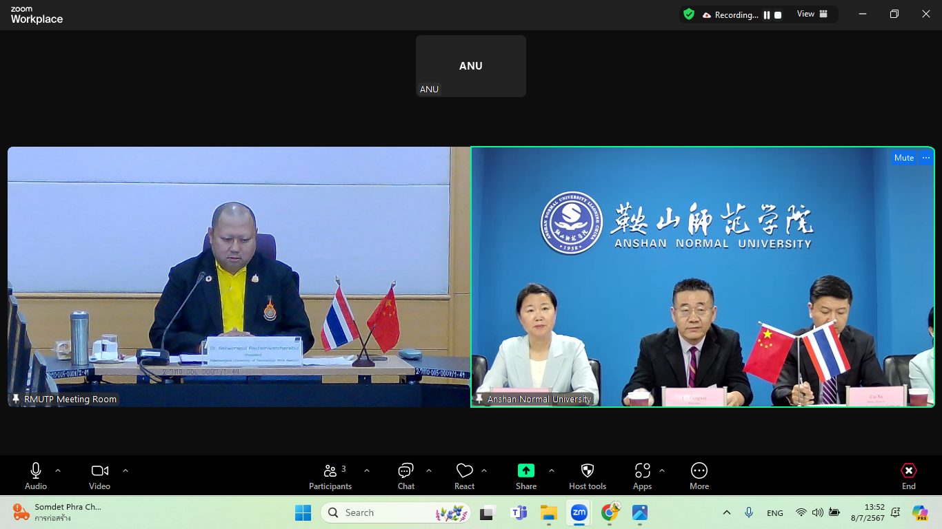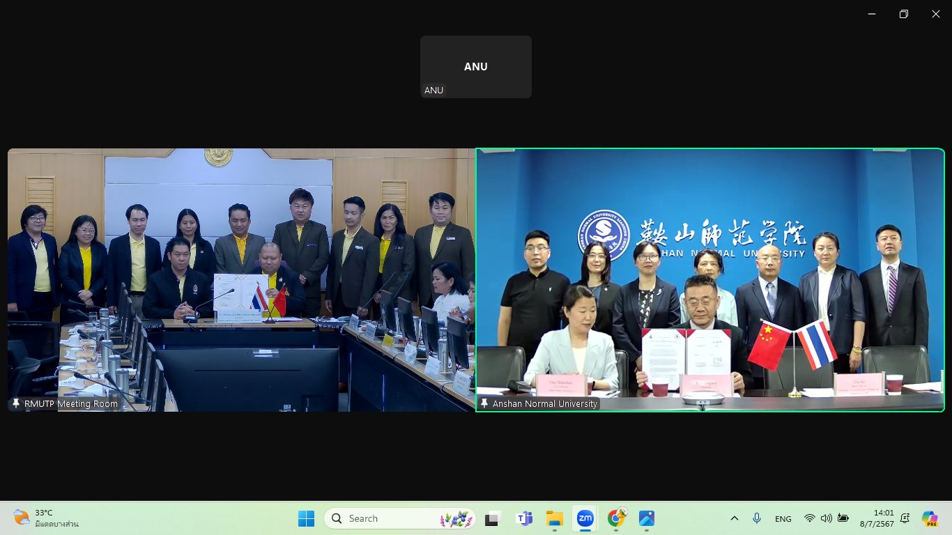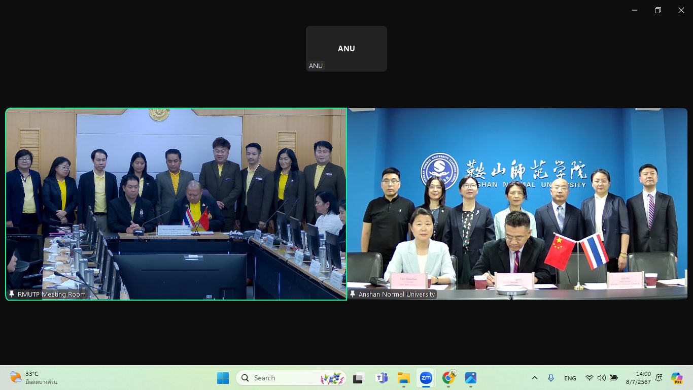 On July 8, 2024, Rajamangala University of Technology Phra Nakhon (RMUTP) signed a Memorandum of Understanding (MOU) for academic cooperation with Anshan Normal University (ANU), People’s Republic of China. Dr. Natworapol Rachsiriwatcharabul, President of RMUTP, presided over the signing ceremony alongside Mr. Liu Gengwei, an executive from ANU. The event was held in a hybrid format via a live broadcast system connecting with the Chinese counterpart, attended by senior executives and representatives from both institutions.