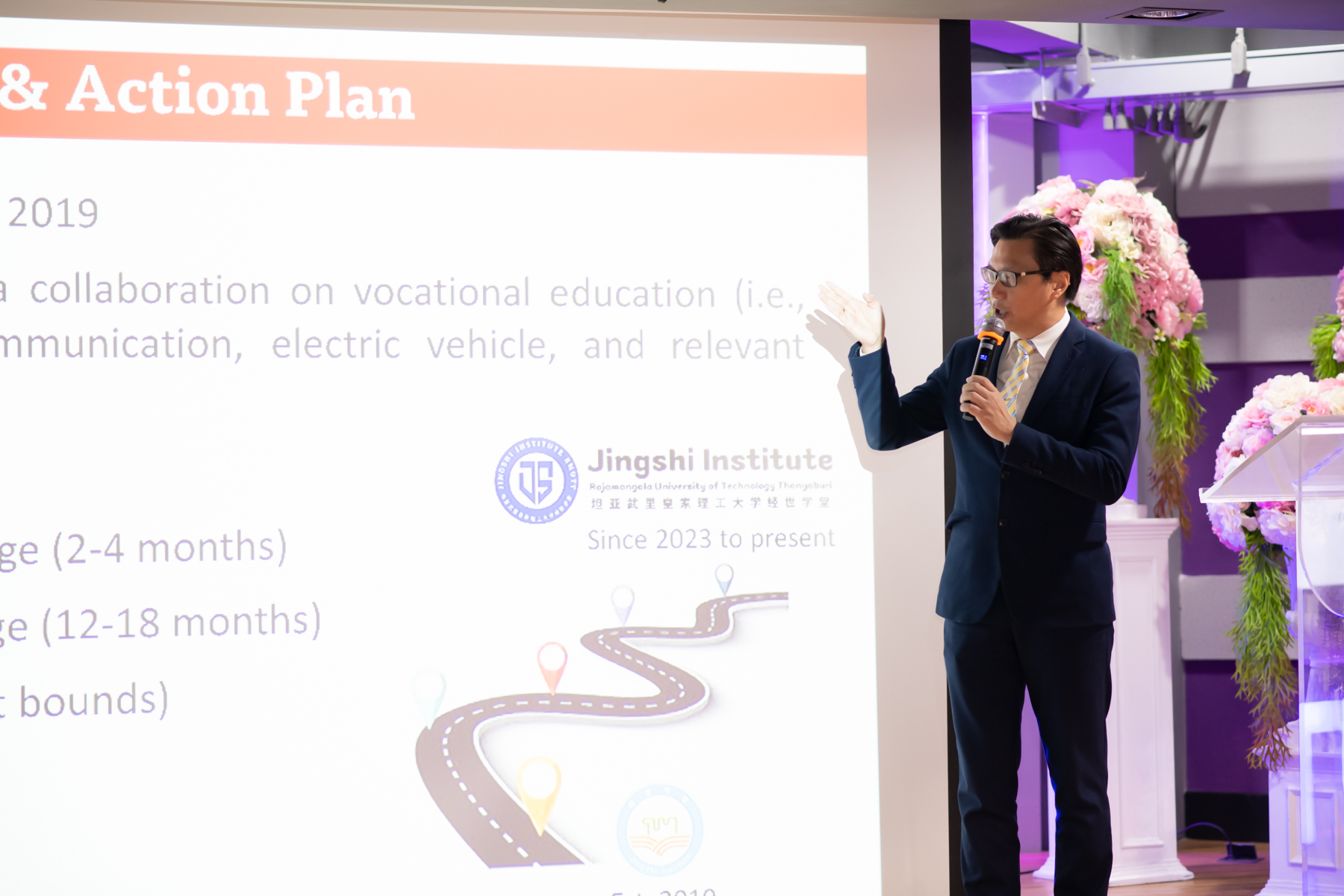 Dr. Natworapol stated that this collaboration aims to exchange educational expertise and provide academic services through the establishment of the Jingshi Institute in Thailand. This institute—the 5th of its kind—is designed to elevate educational standards and produce high-potential personnel in engineering and technology for professional careers globally. The ceremony also featured the unveiling of the Jingshi Institute plaque, alongside Thai cultural performances including Khon (Hanuman and Suphannamatcha) and Nora (Southern Thai folk dance), showcasing Thailand’s soft power to an international audience.